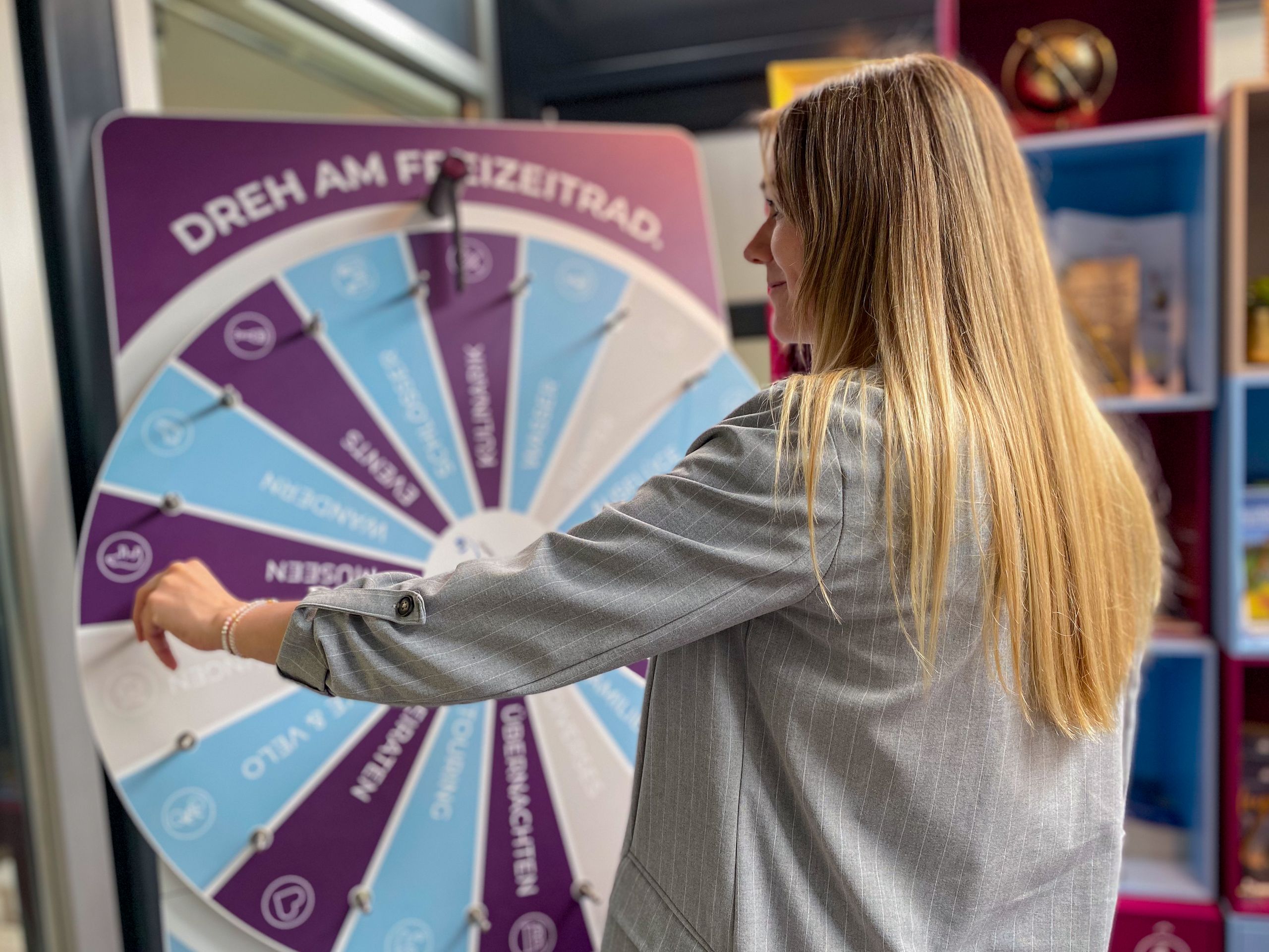 Besuchen Sie die unbediente Touristinfo im Mercure Hotel Krone in Lenzburg und erleben Sie etwas Besonderes: Drehen Sie am Freizeitrad und lassen Sie sich spontan Tipps für Ausflugsziele und Aktivitäten geben. Eine originelle Art, Ihre Freizeit im Seetal zu planen – einfach, inspirierend und spielerisch.